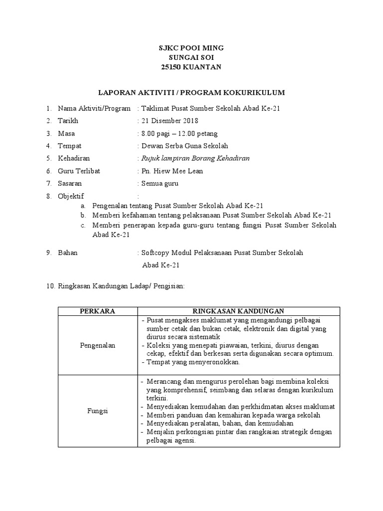 Cadangan Aktiviti Tahunan Dan Buku Pengurusan Pusat Sumber Sekolah